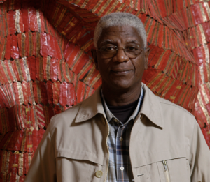 Ensuite, il abandonne ces matières propres à la culture africaine (bois, terre/céramique) pour basculer vers le métal en utilisant des capsules et des morceaux de canettes découpées. Il crée des immenses drapés.