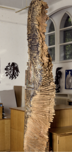 « Erosion », 1992 : morceaux de bois brûlés associés à d’autres éléments. Très organique.