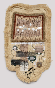 Techniques mixtes. Présence de céramiques et d’ensachement de végétaux qui font penser aux pratiques des sorcières, des chamans.