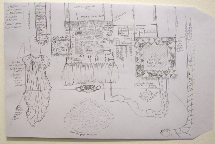 Je me sens confus par la couleur violette de certains tissages et orangé des coquillages. Je parcours l’installation tantôt avec tristesse et tantôt avec joie.