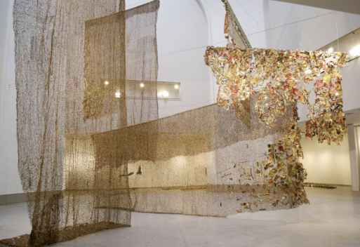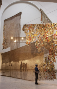 El Anatsui reprend une tradition qui s’est imposée dans l’art contemporain depuis le début du XXᵉ siècle : la réhabilitation de l’objet de rebut. Cette démarche consiste à conférer une valeur artistique à des objets de rebut, des matériaux initialement dépourvus de toute dimension esthétique. L’artiste choisit ainsi de transformer ce qui était destiné à être jeté, en œuvre d’art.